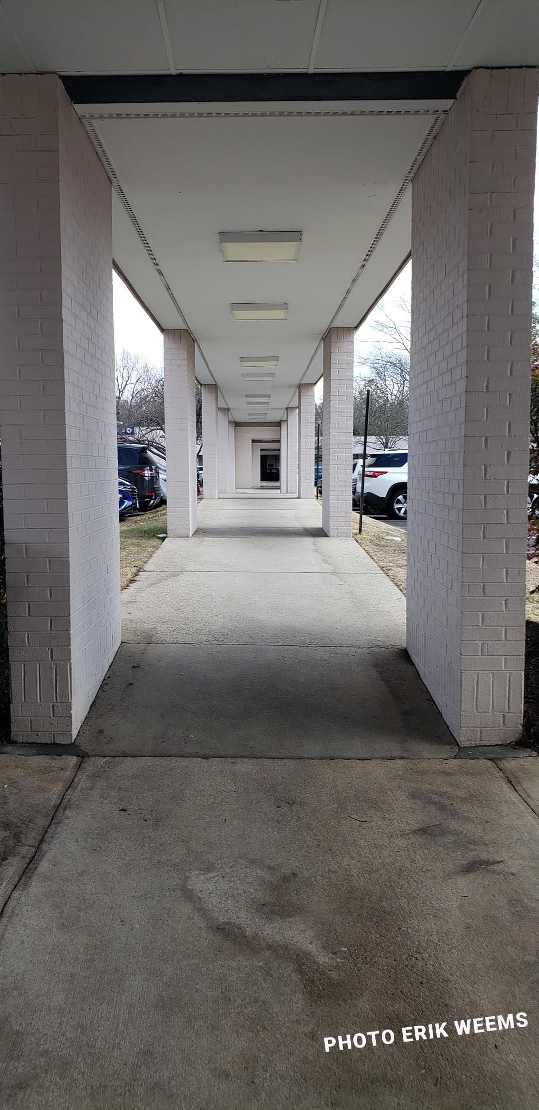 The covered walkway out into the parking and onto other buildings at Johnston Willis Hospital in Chesterfield