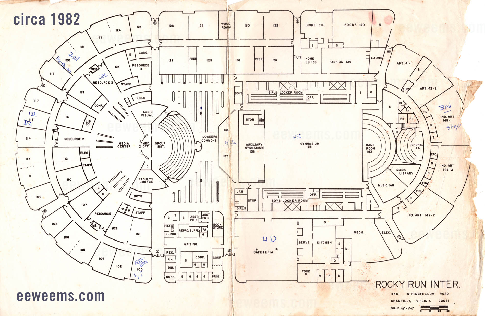 eeweems.com archive Rocky Run Intermediate Middle School Floor Plan Circa 1982 Floor Plan of the (then) new school in Chantilly, Virginia.